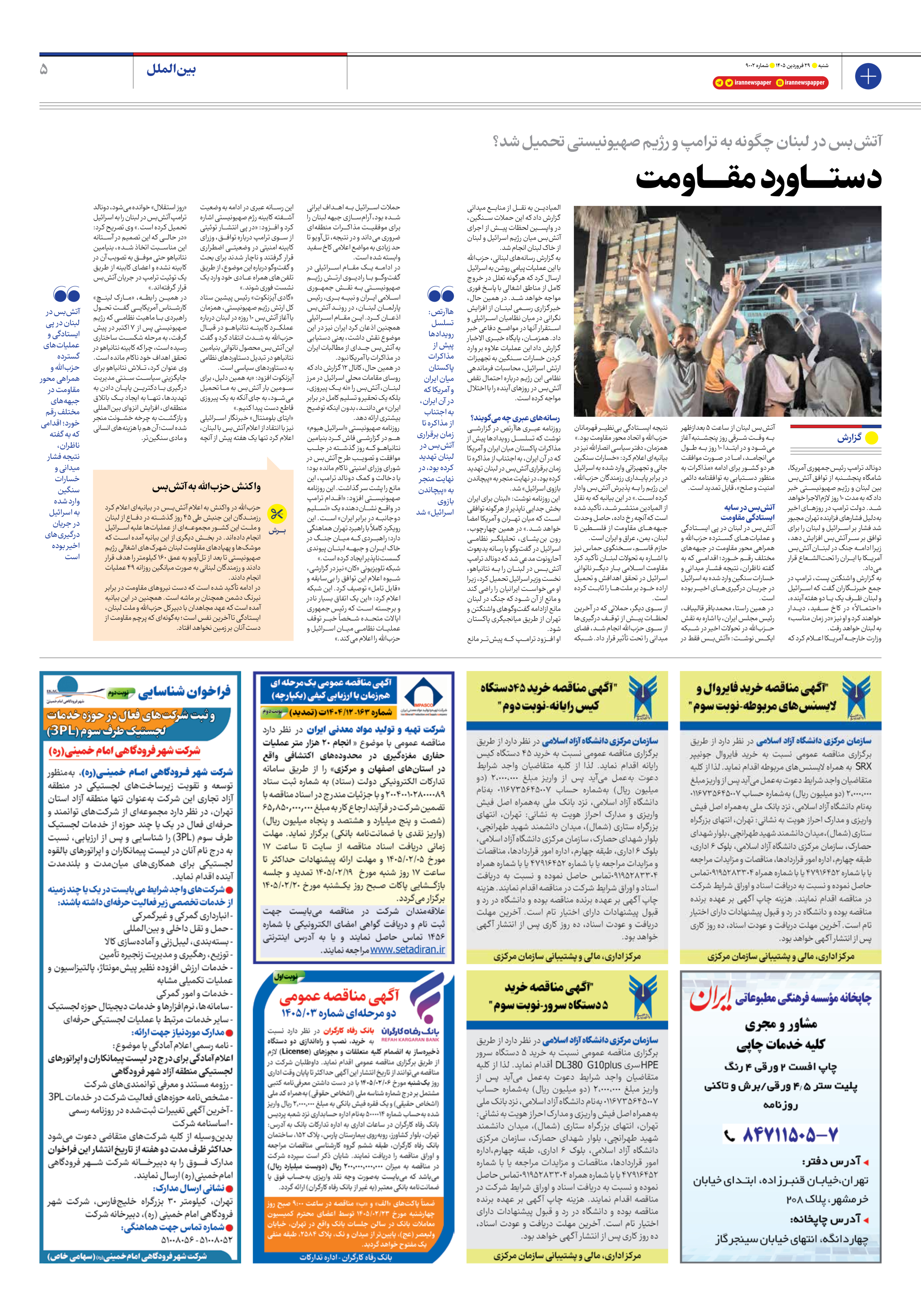 این روزنامه نوشت: «لبنان برای ایران بخش جدایی ناپذیر از هرگونه توافقی است که میان تهران و آمریکا امضا خواهد شد.» در همین چهارچوب، رون بنیشای، تحلیلگر نظامی اسرائیل در گفتوگو با رسانه یدیعوت آحارونوت مدعی شد که دونالد ترامپ آتشبس در لبنان را به نتانیاهو، نخست وزیر اسرائیل تحمیل کرد، زیرا او میخواست ایرانیان را راضی کند و مانع از آن شود که جنگ در لبنان مانع ازادامه گفتوگوهای واشنگتن و تهران از طریق میانجیگری پاکستان شود.