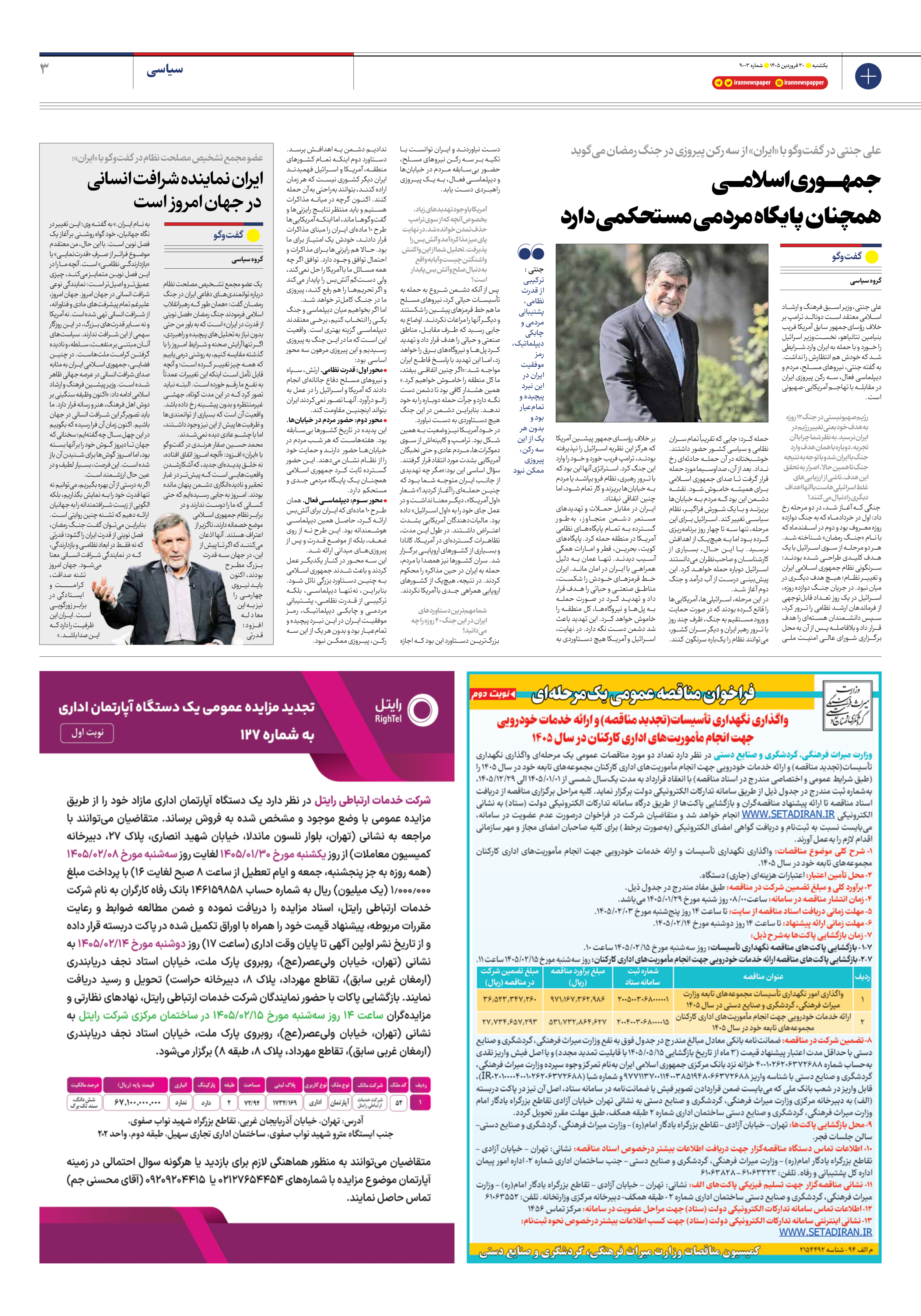 اگر به درستی از آن بهره بگیریم، میتوانیم نه تنها قدرت خود را به نمایش بگذاریم، بلکه الگویی از زیست شرافتمندانه را به جهانیان ارائه دهیم که تشنه چنین روایتی است. بنابراین میتوان گفت جنگ رمضان، فصل نوینی از قدرت ایران را گشود؛ قدرتی که نه فقط در ابعاد نظامی و بازدارندگی، که در نمایندگی شرافت انسانی معنا میشود. جهان امروز تشنه صداقت، کرامــــــــت و ایستادگی در برابر زورگویی است. ایران این ظرفیت را دارد که این صدا باشد. »
