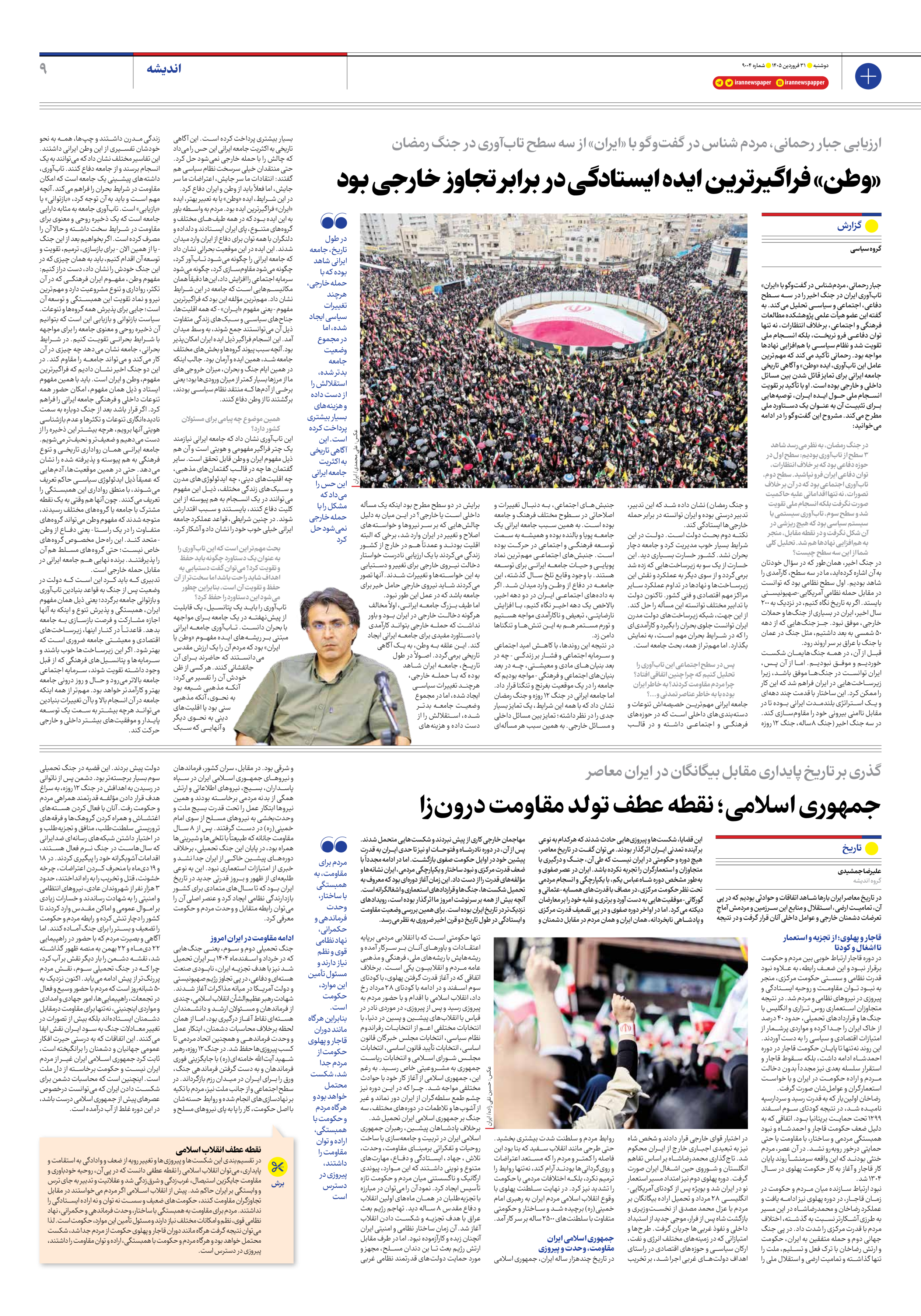 جنگ تحمیلی دوم و سوم، یعنی جنگهایی که در خرداد و اسفندماه 1404 بر ایران تحمیل شد نیز با هدف تجزیه ایران، نابودی صنعت هستهای و دفاعی، در پی تجاوز رژیم صهیونیستی و دولت آمریکا در میانه مذاکرات آغاز شدند. شهادت رهبر عظیمالشأن انقلاب اسلامی، چندی از فرماندهان و مسئولان ارشد و دانشمندان هستهای نقاط آغاز درگیری بود، اما از همان لحظه برخلاف محاسبات دشمنان، ابتکار عمل و وحدت فرماندهی و همچنین اتحاد مردمی تا کسب پیروزیها حفظ شد. در جنگ 12 روزه، رهبر شهید آیتالله خامنهای(ره) با جایگزینی فوری فرماندهان و به دست گرفتن فرماندهی جنگ، ورق را برای ایران در میدان رزم بازگرداند. در سطح اجتماعی و از جانب ملت نیز، مردم با تکیه بر نهادسازیهای انجام شده و روابط حسنهشان با اصل حکومت، کار را پا به پای نیروهای مسلح و دولت پیش بردند. این قضیه در جنگ تحمیلی سوم بسیار برجستهتر بود. دشمن پس از ناتوانی در رسیدن به اهدافش در جنگ 12 روزه، به سراغ هدف قرار دادن مؤلفه قدرتمند همراهی مردم و حکومت رفت. آنان با فعال کردن هستههای اغتشاش و همراه کردن گروهکها و فرقههای تروریستی سلطنتطلب، منافق و تجزیهطلب و در اختیار داشتن شبکههای رسانهای ضدایرانی که سالهاست در جنگ نرم فعال هستند، اقدامات آشوبگرانه خود را پیگیری کردند. در ۱۸ و ۱۹ دیماه با منحرف کردن اعتراضات، چرخه خشونت، قتل و تخریب را به راه انداختند، حدود 3 هزار نفر از شهروندان عادی، نیروهای انتظامی و امنیتی را به شهادت رساندند و خسارات زیادی بر اموال عمومی و اماکن مقدس وارد کردند تا کشور را دچار تنش کرده و رابطه مردم و حکومت را تضعیف و بستر را برای جنگ آماده کنند. اما آگاهی و بصیرت مردم که با حضور در راهپیمایی ۲۲ دیماه و ۲۲ بهمن به منصه ظهور گذاشته شد، نقشه دشمن را بار دیگر نقش بر آب کرد، چرا که در جنگ تحمیلی سوم، نقش مردم پررنگتر از پیش ادامه مییابد. اکنون نزدیک به 50 شبانهروز است که مردم با حضور وسیع و فعال در تجمعات، راهپیماییها، امور جهادی و امدادی و مواردی اینچنینی، نهتنها برای مقاومت درمقابل دشمنان ایستادهاند بلکه بیش از تصورات در تغییر معادلات جنگ به سود ایران نقش ایفا میکنند. این اتفاقات که به درستی حیرت افکار عمومی جهانیان و دشمنان را برانگیخته است، ثابت کرد جمهوری اسلامی ایران غیر از مردم ایران نیست و حکومت برخاسته از دل ملت است. اینچنین است که محاسبات دشمن برای شکست دادن ایران که میتوانست درخصوص عصرهای پیش از جمهوری اسلامی درست باشد، در این دوره غلط از آب درآمده است.