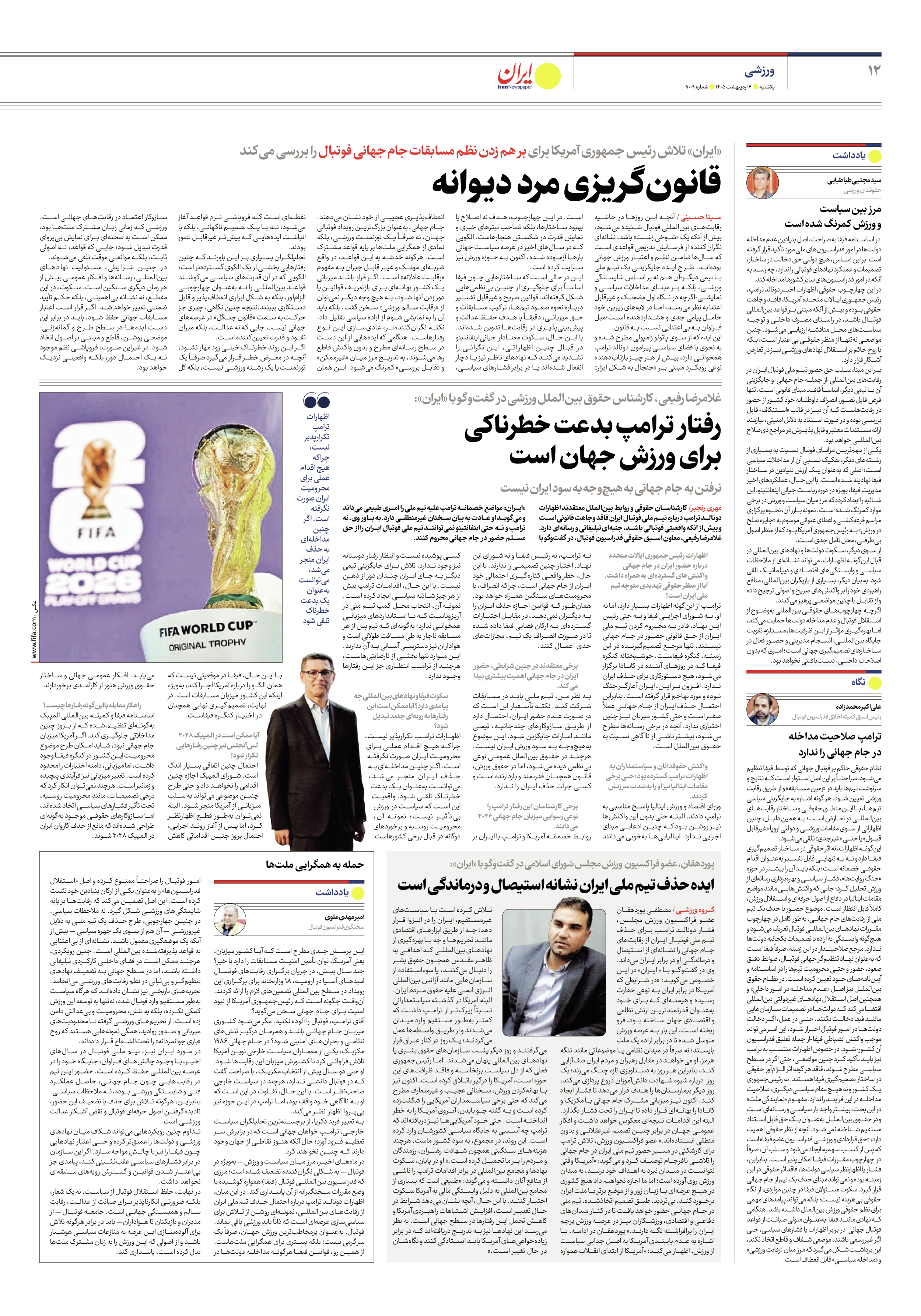 در ماههای اخیر، مرز میان سیاست و ورزش — بهویژه در فوتبال — به شکلی نگرانکننده تضعیف شده است؛ مرزی که فدراسیون بینالمللی فوتبال (فیفا) همواره کوشیده با وضع مقررات سختگیرانه از آن پاسداری کند. در این میان، اظهارات دونالد ترامپ درباره احتمال حذف تیم ملی ایران از رقابتهای بینالمللی، نمونهای روشن از تلاش برای سیاسیسازی عرصهای است که ذاتاً باید ورزشی باقی بماند.