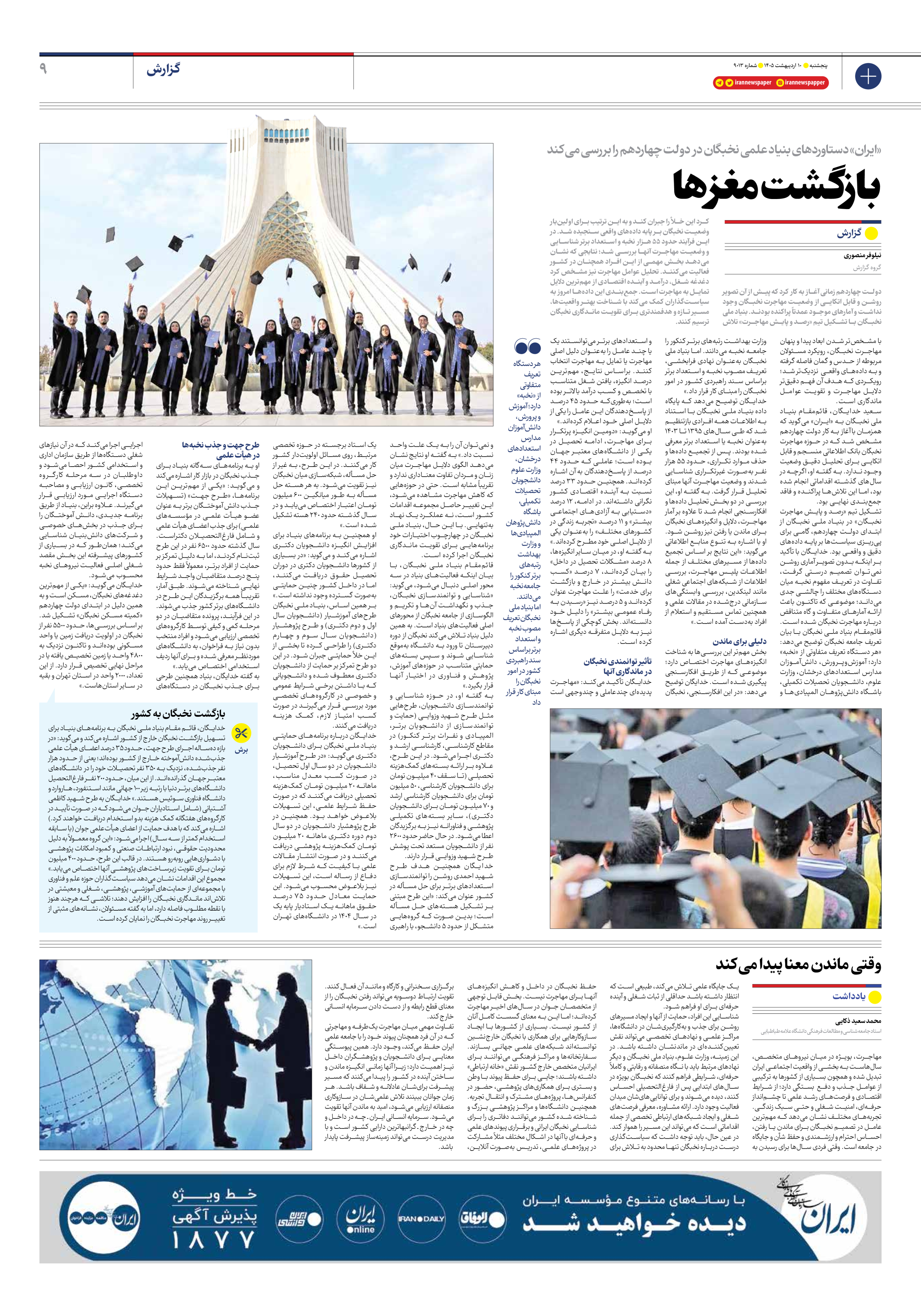 شناسایی این افراد، حمایت از آنها و ایجاد مسیرهای روشن برای جذب و بهکارگیریشان در دانشگاهها، مراکز علمی و نهادهای تخصصی میتواند نقش تعیینکنندهای در ماندنشان داشته باشد. در این زمینه، وزارت علوم، بنیاد ملی نخبگان و دیگر نهادهای مرتبط باید با نگاه منصفانه و رقابتی و کاملاً حرفهای، شرایطی فراهم کنند که نخبگان بویژه در سالهای ابتدایی پس از فارغالتحصیلی احساس کنند، دیده میشوند و برای تواناییهایشان میدان فعالیت وجود دارد. ارائه مشاوره، معرفی فرصتهای شغلی و ایجاد شبکههای ارتباطی تخصصی از جمله اقداماتی است که میتواند این مسیر را هموار کند.