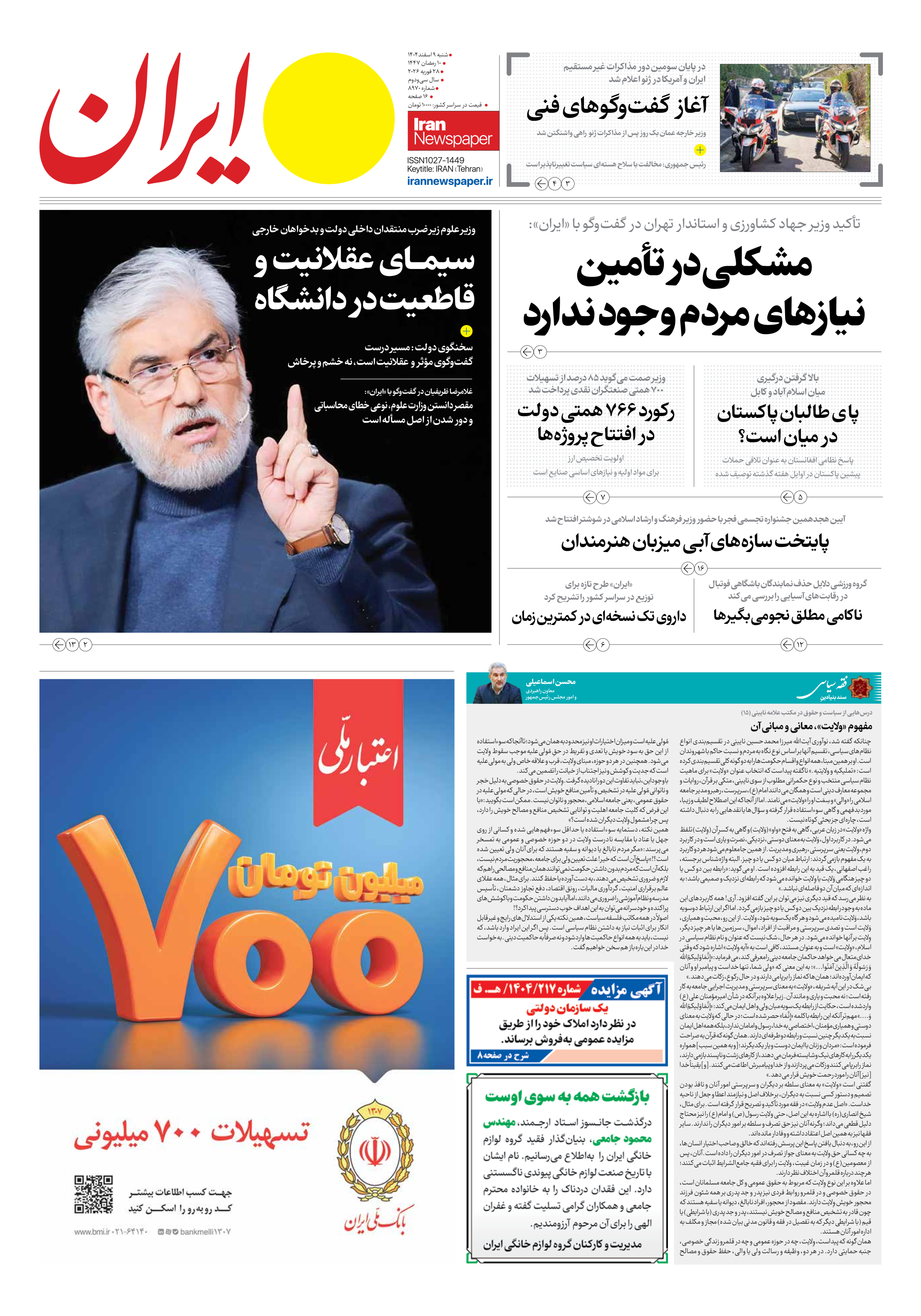 شماره هشت هزار و نهصد و هفتاد ۰۹ اسفند ۱۴۰۴
