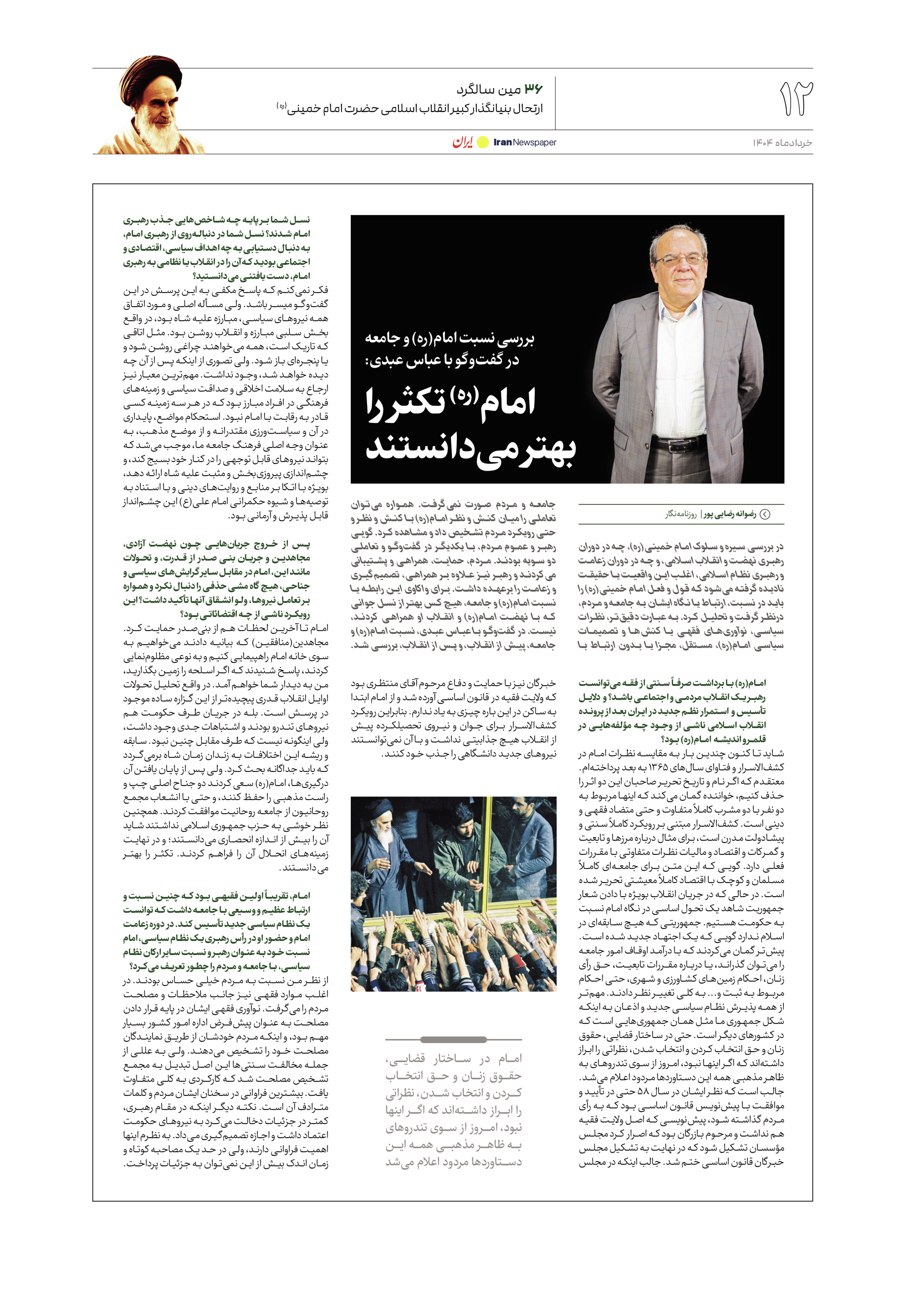 ویژه نامه ویژه نامه سی و ششمین سالگرد ارتحال امام (ره)