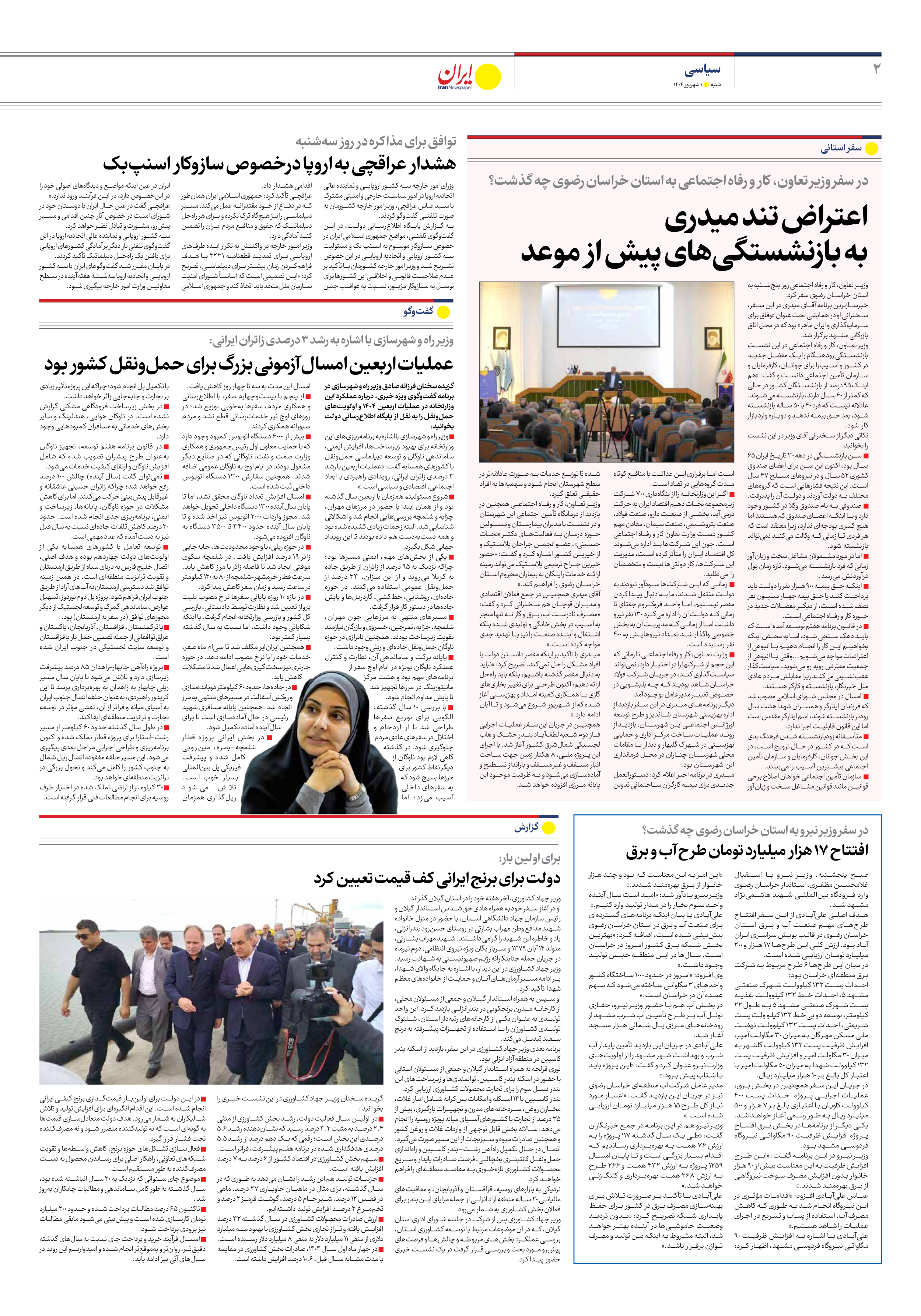 افتتاح ۱۷ هزار میلیارد تومان طرح آب و برق