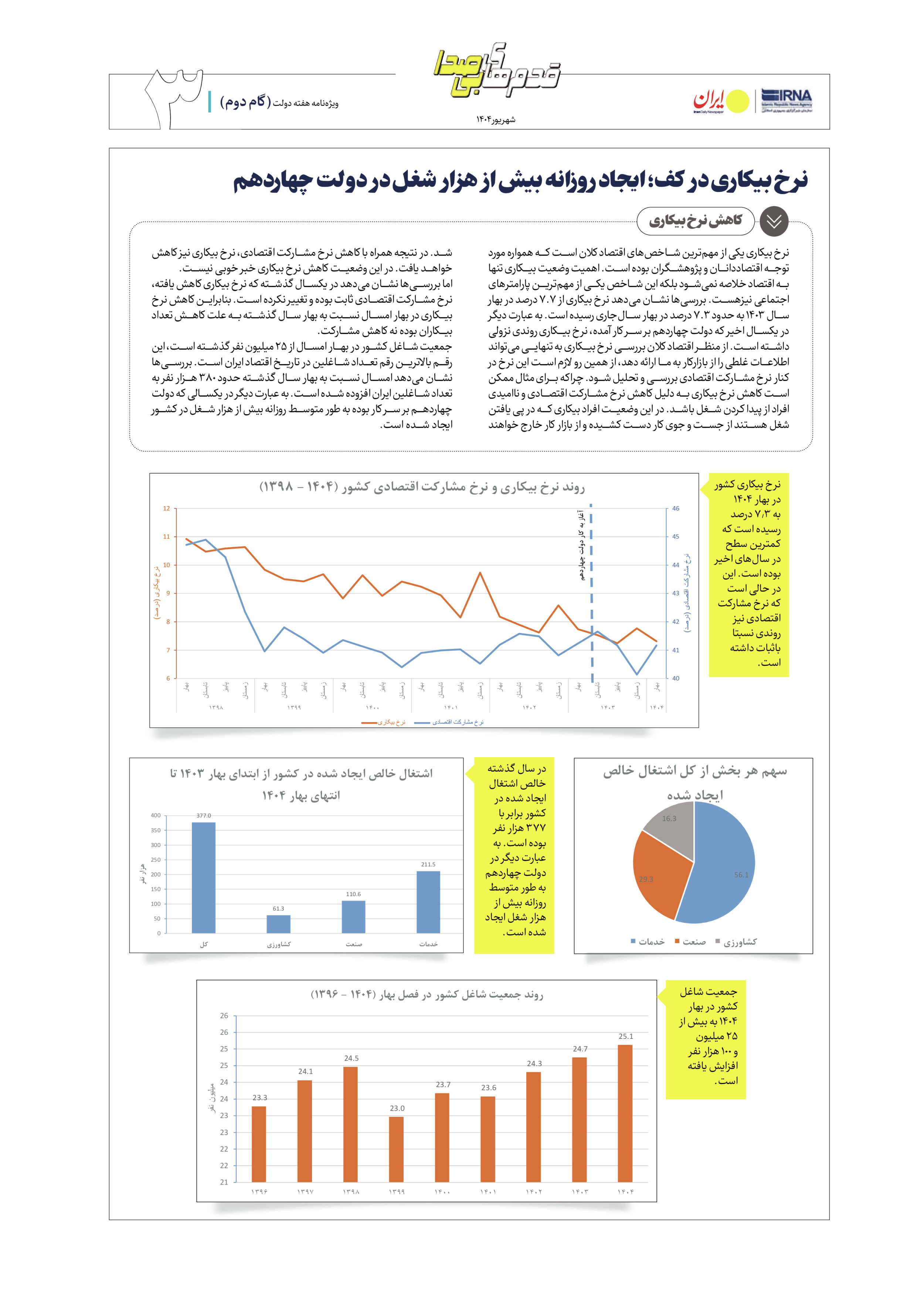 نرخ بیکاری در کف؛ ایجاد روزانه بیش از هزار شغل در دولت چهاردهم