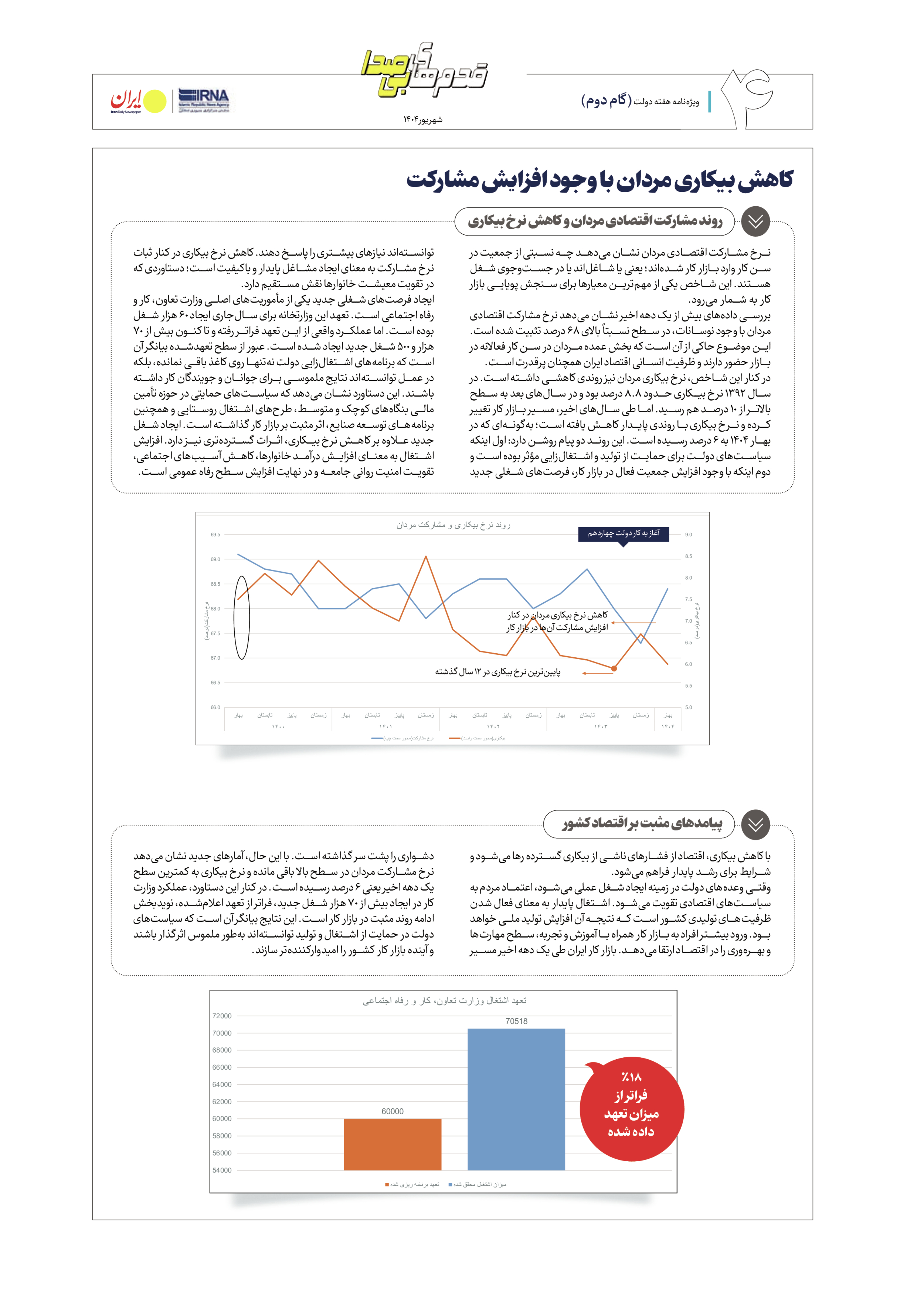 کاهش بیکاری مردان با وجود افزایش مشارکت