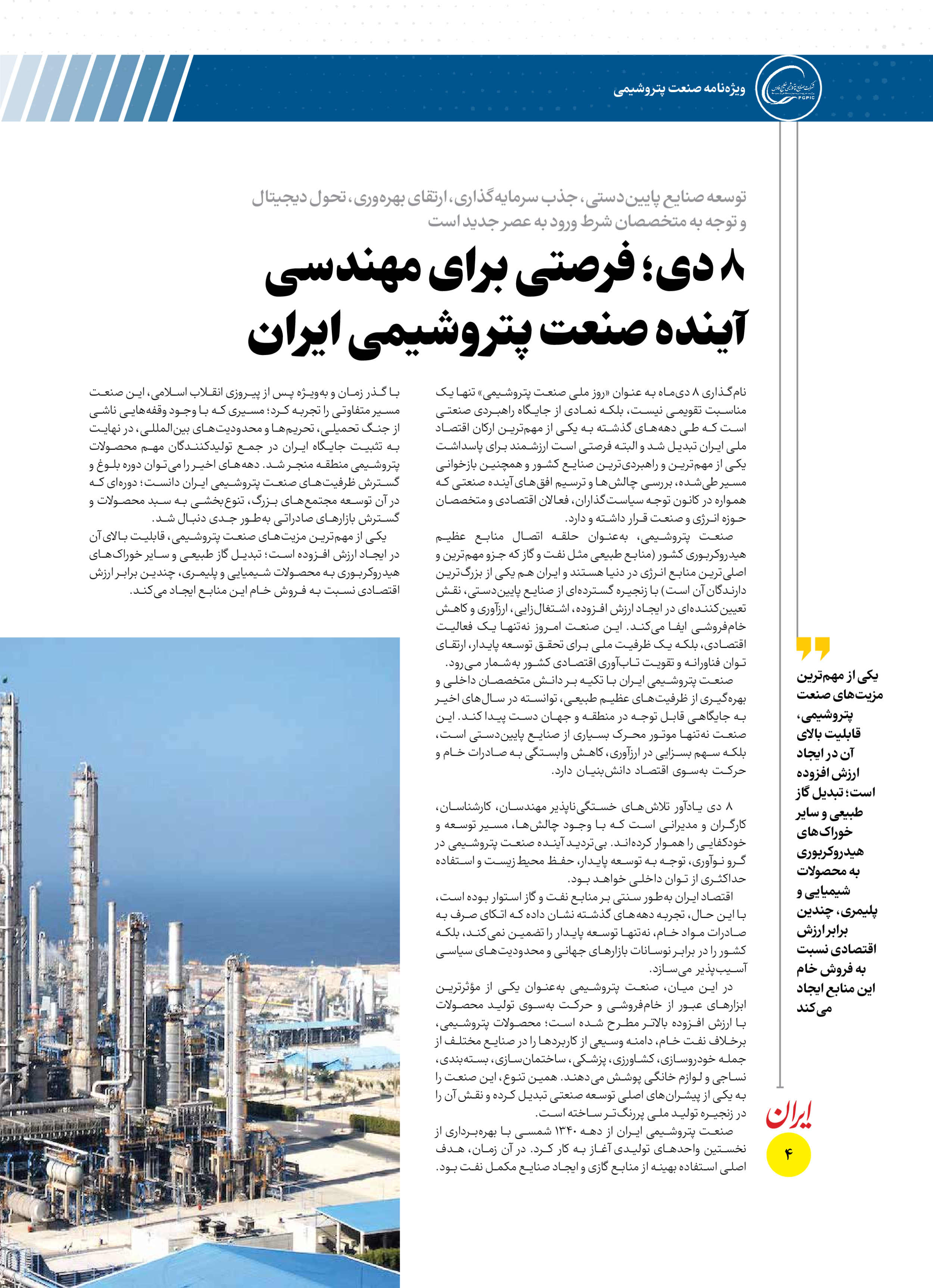 • ۸ دی؛ فرصتی برای مهندسی آینده صنعت پتروشیمی ایران